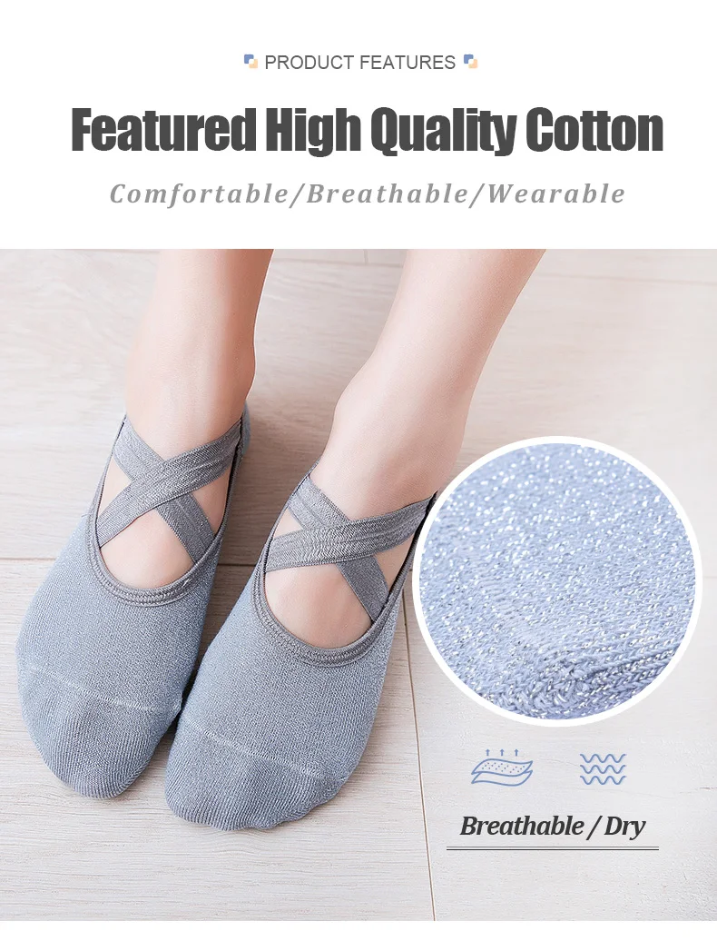 Sports Open-Heel Pilates Grip Socks (Cross-Strap)